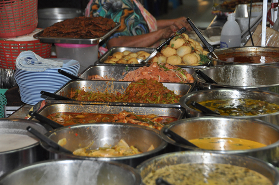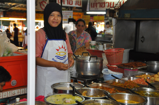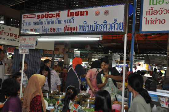 ร้านรอบีอะห์ โภชนา ข้าวแกงอิสลาม ไม่เคยนึกมาก่อนเลยว่า เวลาที่จะซื้ออาหารมารับประทานจะต้องใช้บัตรคิว เพื่อรอให้แม่ค้าเรียกเบอร์ในบัตร ถึงจะสั่งให้ทางร้านตักแกงให้เราได้ สั่งไว้ล่วงหน้าก็ไม่ได้ ทุกคนต้องยืนรอรับกลับไปเอง ทางร้านไม่สามารถที่รับประกันว่าอาหารชนิดไหนจะหมดเร็วหรือช้าได้ นี่จึงเป็นสาเหตุที่ต้องให้บัตรคิวกับลูกค้า รอบีอะห์ โภชนา เป็นอาหารสำเร็จรูปของชาวมุสลิม อีกร้านหนึ่งที่อยากแนะนำเป็นเมนูเด็ด เพราะร้านนี้มีขนมจีนซาวน้ำที่มีรสชาติจัดจ้าน หอมกะทิสด ๆ กุ้งแห้งป่นที่ไม่เค็ม ผสมรวมกับสัปรดเนื้อ1ที่หวานฉ่ำไม่ฉุน พ่วงด้วยขิงอ่อนซอยกับพริกขี้หนูสวนซอยละเอียด เมื่อรวมกันแล้วเป็นขนมจีนซาวน้ำที่มีรสชาติเป็นเอกลักษณ์ เฉพาะของร้านนี้ ความอร่อยจากร้านข้าวแกงบัตรคิวนี้ยังไม่หมด ยังมีอาหารที่หาทานยาก ไม่ว่าจะเป็น ปลาบูดูหลน ที่มีรสชาติ เปรี้ยวนำ ตามด้วยหวานเล็กน้อย เข้มข้นด้วยกะทิสด เมื่อได้รับประทานกับผักสด ๆ ไม่อยากอิ่มเลย ผัดหมี่กะทิแบบอิสลามที่ใส่เครื่องในไก่กับเต้าหู้แผ่นช่างเป็นการรวมตัวที่สมบูรณ์แบบจริง ๆ ยังไม่หมดเพียงเท่านี้ ยังมี ขนมจีนน้ำพริก ที่มีผักแนมตัวเอกเป็น หัวปลีซอยละเอียด กับผักบุ้งไทยที่อวบๆอ่อนๆ กลิ้งกับน้ำมันพืช และพริกขี้หนูแห้งทอดไม่อมน้ำมันที่กรอบ หอมเพราะความใหม่ด้วย และยังมีอาหารสำเร็จรูปหลายอย่างที่อร่อยมาก ต้องแวะมาซื้อไปชิม เมื่อได้รับประทานทุกเมนูของร้านรอบิอะห์ ทำให้ลืมไปเลยว่ากำลังควบคุมน้ำหนักอยู่ อยากบอกว่าร้านนี้เขา จะมาขายเฉพาะช่วงประมาณบ่ายสองโมงของทุกวัน ถ้ามาก่อนบ่ายสองโมงผิดหวังแน่เลย และร้านนี้ตั้งอยู่ที่ ตลาดมีนบุรี2(ตลาดใหม่)